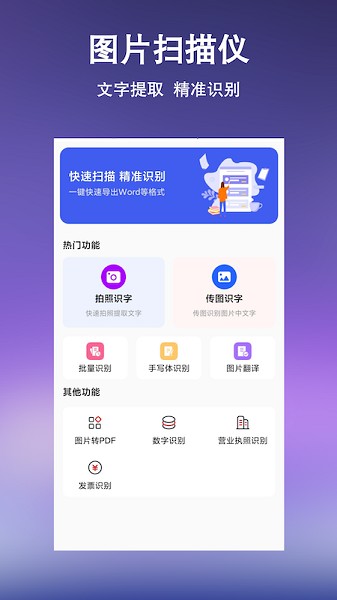文字提取扫描王app能够帮助用户使用手机即可快速进行图片,文字的扫描,并且将扫描区域的文字自动转出,支持多种格式导出,给用户带来极大的帮助。无需手动输入,一键扫描,即可得到所有信息内容。