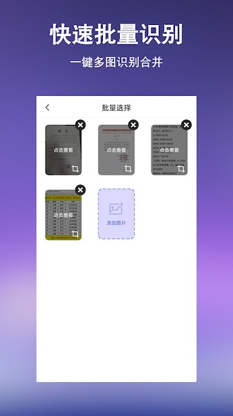 扫描模式,支持单张拍摄、多张拍摄等模式,批量识别文档图片,并支持编辑、复制、移动、合并等功能