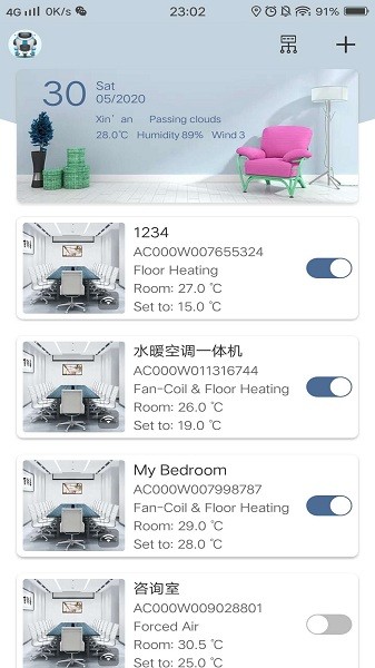 1.首先,打开优智云家园APP,点击“+”添加房间。
