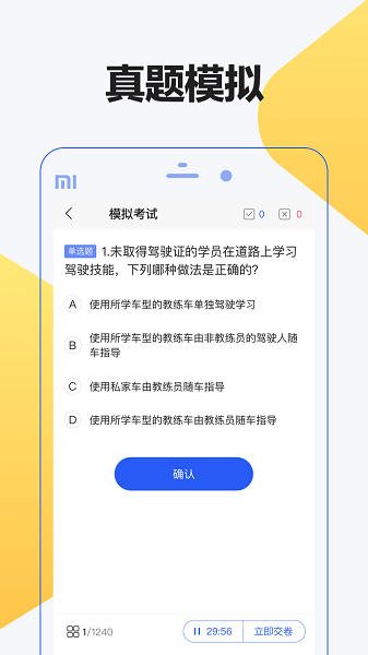 为广大学员提供的驾照理论考试的学习软件,是专业的驾照理论考试的学习软件。支持全国各地的驾照考试题库。支持科目一、科目四,帮助广大学员顺利完成理论考试。