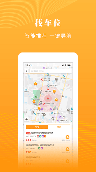 强大的定位功能,可精准的为你推送附近的停车位置