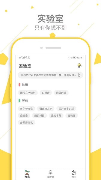一个宝盒app内置了超多的小工具,让你在办公中还是生活中都能够很好的进行使用,可以为用户带来更加便捷的使用条件与环境,并且使用起来非常快速而且全部都是免费使用的哦!