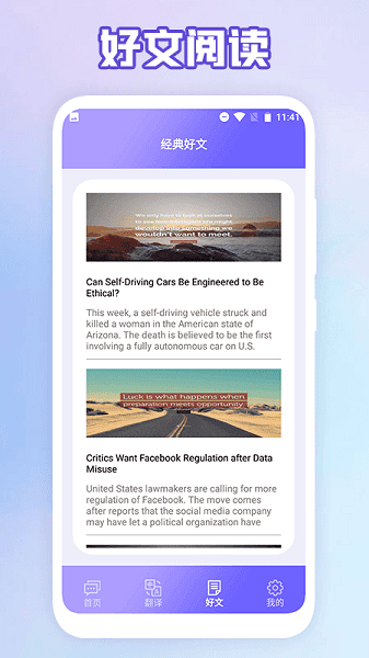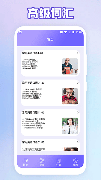 成人英语口语app是专注于英语口语训练的学习平台,汇聚了大量的词汇量,每天都可以来这里打卡练习的,还有各种经典好文可以阅读,帮助大家快速的提升自身的水平,同时也是不错的翻译工具。