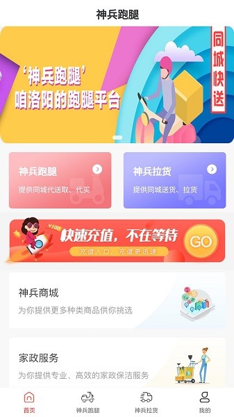神兵跑腿app作为洛阳地区重要的配送跑腿平台,为用户提供最全面最快速的同城配送服务,文件、药品、奶茶等等全都可以下单,专业骑手为你提供极速配送,送货上门无障碍。