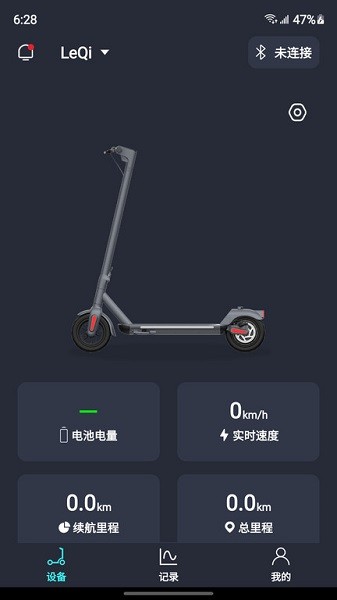乐骑智能滑板车app可以对应的设备连接使用,滑板车的电池电量、实时的速度、总的里程以及客续航的里程勤快清清楚楚,为用户记录每次的行驶情况,详细的图表展示让数据更直观。