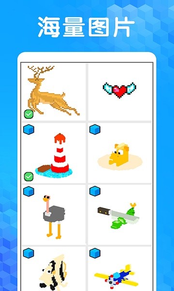 像素涂色3d游戏是规则简单、体验休闲的涂色游戏,按照给出的提示在图画上进行填色,多样的颜色可以选择,超多不同种类的图片,没有时间限制,想玩多久就玩多久。