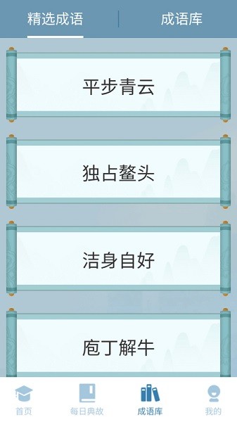 一款轻松好玩的学习成语的应用。应用内的成语参照成语词典详尽解释成语,说明成语出处,在学成语的同时也能了解到成语背后的故事。