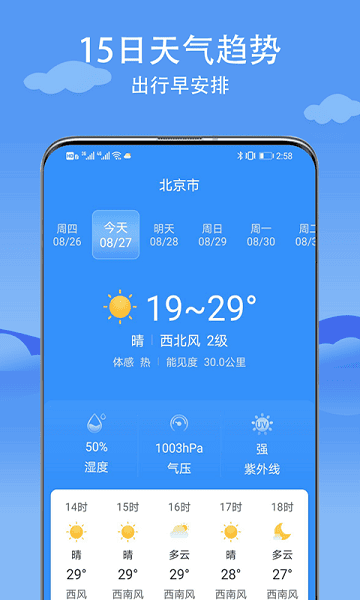直观展示24小时天气与温度变化情况,为出行早做计划。