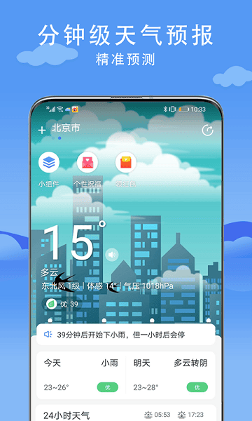 准确到分钟级别的降水预报,知晓何时下雨何时雨停。