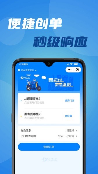 宅达达app能够随时轻松创建订单,零秒内极速响应,聚合了海量的商家,随时随地轻松完成配送服务,你可以自由地进行选择,系统会快速派单,完成你的任何配送需求。