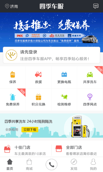四季车服携手各大保险公司,为投保车主提供的免费保养服务、积分兑换服务。