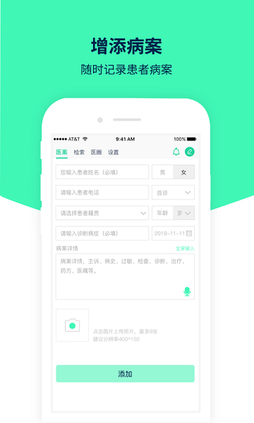 可以通过拍照的形式进行档案的储存,随时随地开始记录相应的病案