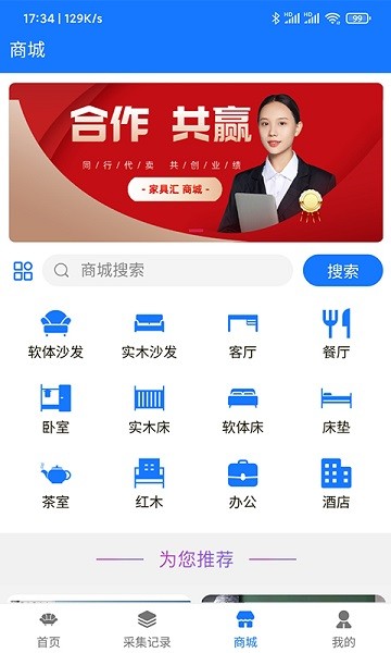 家具汇app是家具行业拓展营销的好帮手,打造了客源中心,帮助商家更精准的获客,同时也为用户打造了家具采购的专区,一下实木沙发、红木、床垫等等产品都是有的。