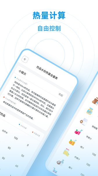 4.饮水记录;精准记录您每日的摄入水量以及热量,让您精准地掌握身体还需摄入多少水