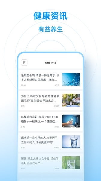 1.健康资讯;内含丰富的饮水健康资讯,让您更加了解如何饮水能更健康。