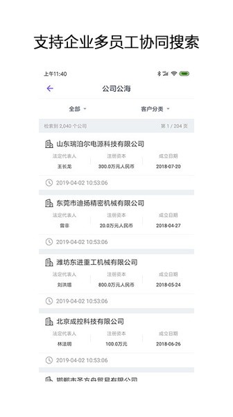 精准商机检索:集合了海量企业客户资源和更加及时的动态商机信息,你想要的都在这里。