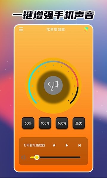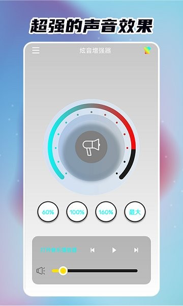 炫音增强器app能够扩大手机的音量,多个级别模式可以去设置的,当你播放音乐的时候不用担心手机的音量太小了,功能比较简洁,大家都能轻松操作的,赶紧来体验吧!