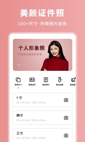 3、选择查找需要的格式,通过证件照尺寸类别图标和列表中能挑选查找需要的格式;