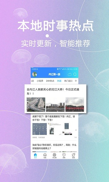 软件是内江本地很有影响力生活社区服务平台,致力于为内江本地用户提供便捷的生活交流和资讯服务。一个专注于提供本地生活消费(包括城市发展、吃喝玩乐、饮食起居)城市发展和情感问题的自由交流平台。