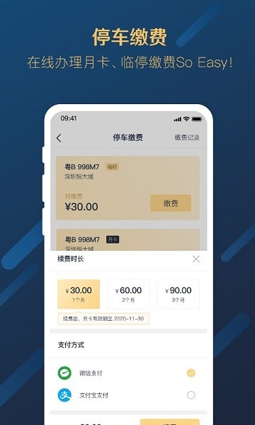 提供停车可以通过app来缴费,非常方便