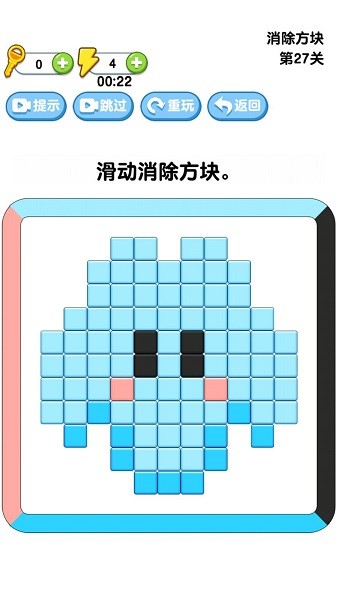 开心消一消游戏中每个关卡所对应的图形都是不一样,所以难度也会不一样,玩家需要滑动屏幕上的方块来进行消除,不需要大家有很快的手速,玩起来还是比较轻松的。