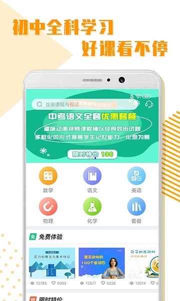 3.涵盖了初中全学科的课程学习,还有免费的优质教师视屏教学在线观看