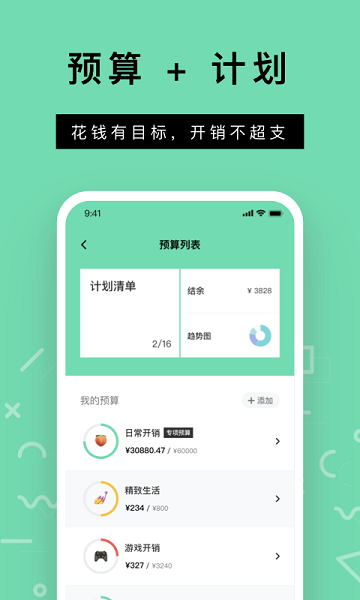为用户提供计划清单,用户可以在这里创建各种计划,有目标的花钱