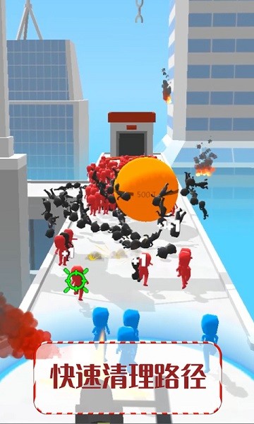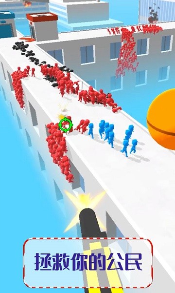 用机枪作为掩护,清除跟随在蓝色火柴人身后的大量红色火柴人,不要让蓝色火柴人掉队,顺便解救路上被捆缚的蓝色火柴人。