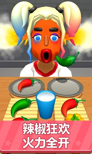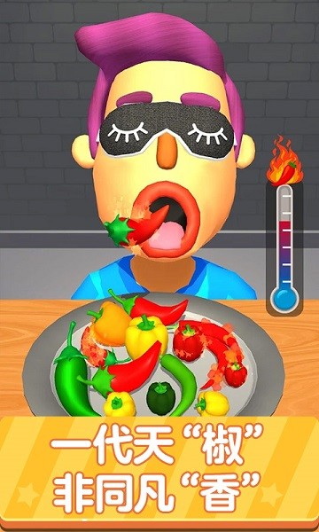 2.角色在吃下辣椒之后的反馈也非常逼真而有趣,随着吃下辣椒的逐渐增多,角色的面部颜色也开始逐渐变红,表情也从普通的毫无反应到极度夸张,最终好像被从内部点燃一般。