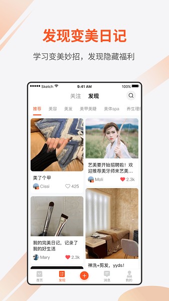 多种发现与笔记功能,轻松打造美业生态社区,可以随时与各种各样的用户沟通与互动