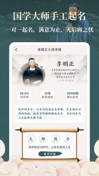 大师的资历信息,能了解大师在取名上的经验,便于给用户更好的体验