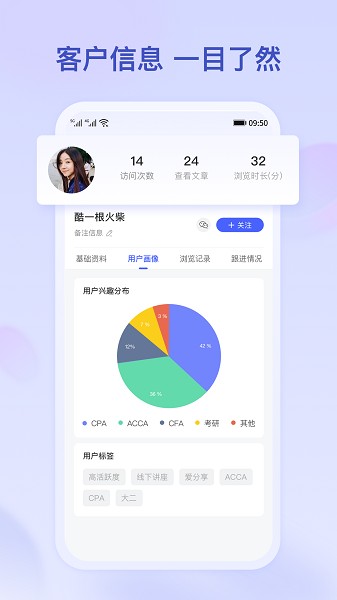一款赋能营销转化的应用,用户可通过这款应用内编辑内容分享到微信并查看到微信用户对素材内容的喜好程度,从而对用户进行更加精准的营销。
