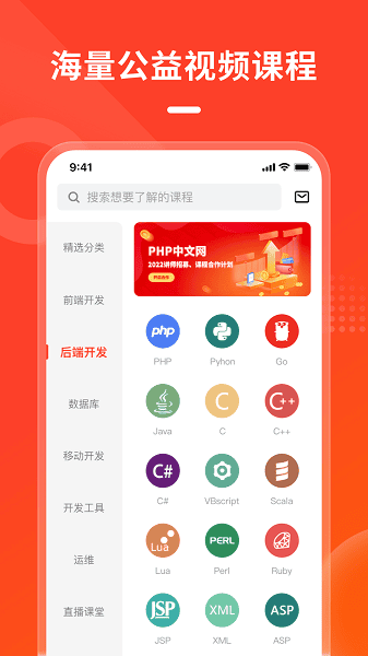 免费公益的PHP编程在线学习APP,尽我们所能,让更多的人掌握php技术,实现自己的程序员梦想!并拓展了GOlang/python/Java/C#等视频教程和技术文档,全部免费!