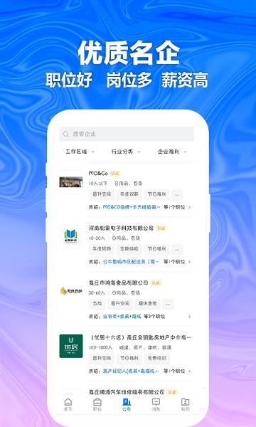 支持企业随时发布信息,入驻这里的全部企业有找人需要的时候可以直接在这里发布招聘岗位信息