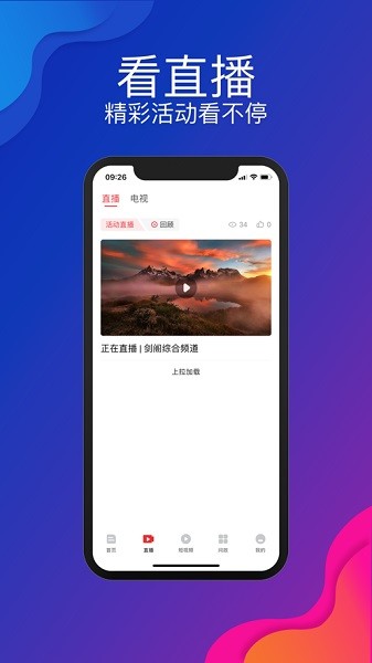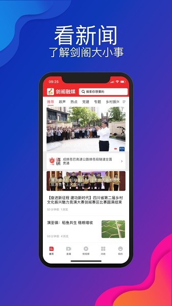 剑阁县融媒体中心官方APP,是剑阁县融媒体中心官方发布新闻的渠道之一,内设要闻、党建、文化等栏目,可以观看剑阁县综合频道的直播和栏目点播。