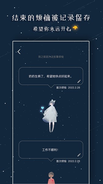 解忧的娃娃app让你在这里可以倾诉任何的事情,各式各样的娃娃会帮助你分档焦虑,开心的事情会使得娃娃高兴,不开心的事情会让娃娃变得伤心。