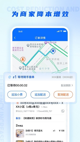 提供一键导入全渠道订单、一键发起聚合配送,为自配送商家提供高效快捷,高性价比的订单履约服务。