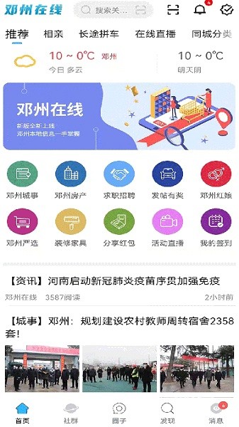 邓州在线app让本地人都能通过平台找到自己感兴趣的话题同时还能借助平台来办理各种相关的服务,资讯信息第一时间就能推送出来,丰富大家的日常生活!