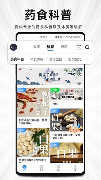 询夫子将以短视频和图文等方式呈现数十位国内顶层专家以权威资料为基础,全面科普药食同源中药材。按照用户需求,邀约对应的专家,针对常见的健康问题进行系统性的直播讲解。将结合现状,由专家团队提供中药科普,中医理论科普以及相应的文化传播服务。
