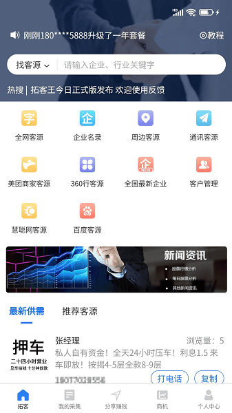 拓客王app帮助用户更好的进行拓客,而且还能让你在线编辑好客户的资料,让你对接起来能够更快的更苦客户需要来进行服务,提高自己的成交效率!