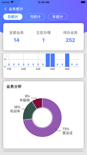中载app是物流企业用于办公管理的重要应用,能够满足企业用户在多种场景下的需求,当日业务实时统计,你可以浏览所有物流业务的信息,在线随时查询。