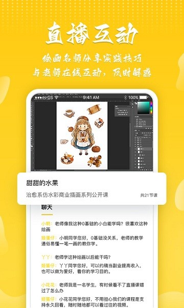 名师授课:一笔一画认真教您学画画,直播课在线与老师实时互动,问题即问即答;