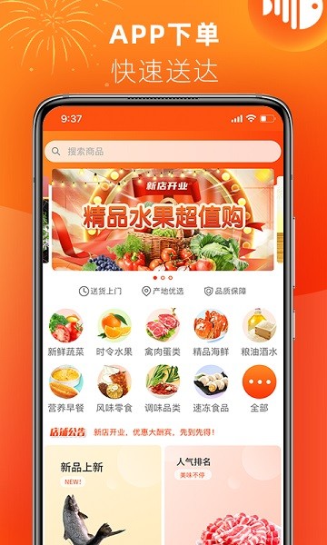 通过线上线下互通模式一站式提供生鲜、水果、肉禽、蔬菜等日常生活必需品,所有产品均产地直供、匠心精选,物美价廉,高效便捷。