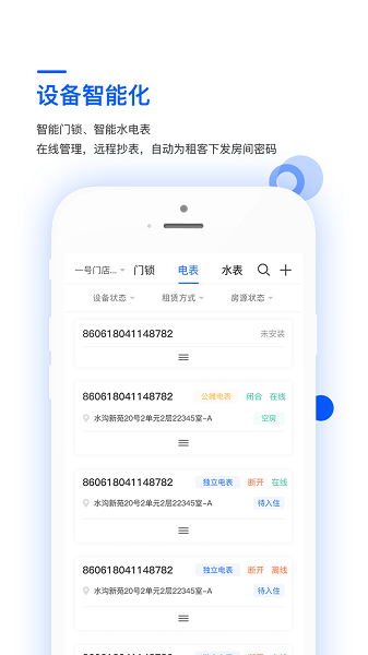 智能门锁、智能水电表,在线管理,远程抄表,自动为租客下发房间密码