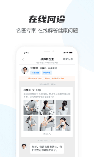 图文问诊:可以通过发送图文的方式进行问诊;