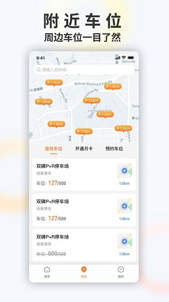 支持根据当前位置推荐附近的车位并导航前往;
