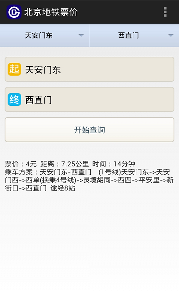 北京地铁站点、票价、线路地图、时刻表查询 应用还不需要连网,不需要流量,单机运行,快速计算出结果!