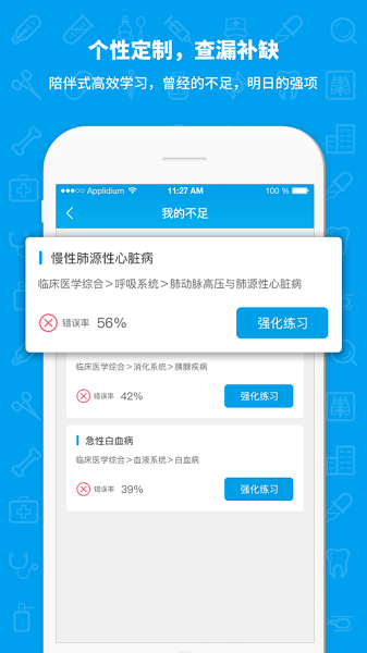 每个课程数万道练习题,全面覆盖考点。专科强化,综合冲刺,模拟考试,一个都不会少。更有面向每位学员的智能分析与智能组卷功能,帮助小伙伴们明确学习漏洞,高效查漏补缺。