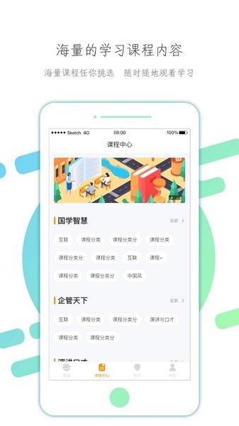 - 海量课程,随时观看:50万+学时在线精选课程,涵盖企业管理、市场营销、个人成长、婚姻家庭、国学养生、子女教育等领域,随时随地观看学习,海量内容任你自由选择;