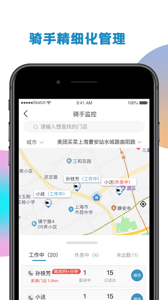 订单管理,外卖人员配送的单据可以同步查询,知晓自己配送的范围。